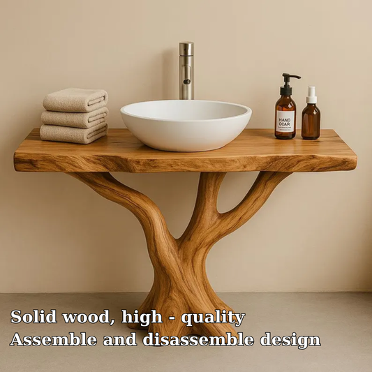 Handcrafted Solid Wood Bathroom Vanity with Natural Tree Shape – Organic Modern Design
