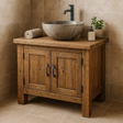 Our Handcrafted Soild Wood Bathroom Vanity is perfect for smaller spaces, offering essential closed storage and a charming, durable solid wood design.This compact single-sink cabinet serves as a beautiful centerpiece, highlighting the natural grain and expert craftsmanship of artisanal wood furniture.