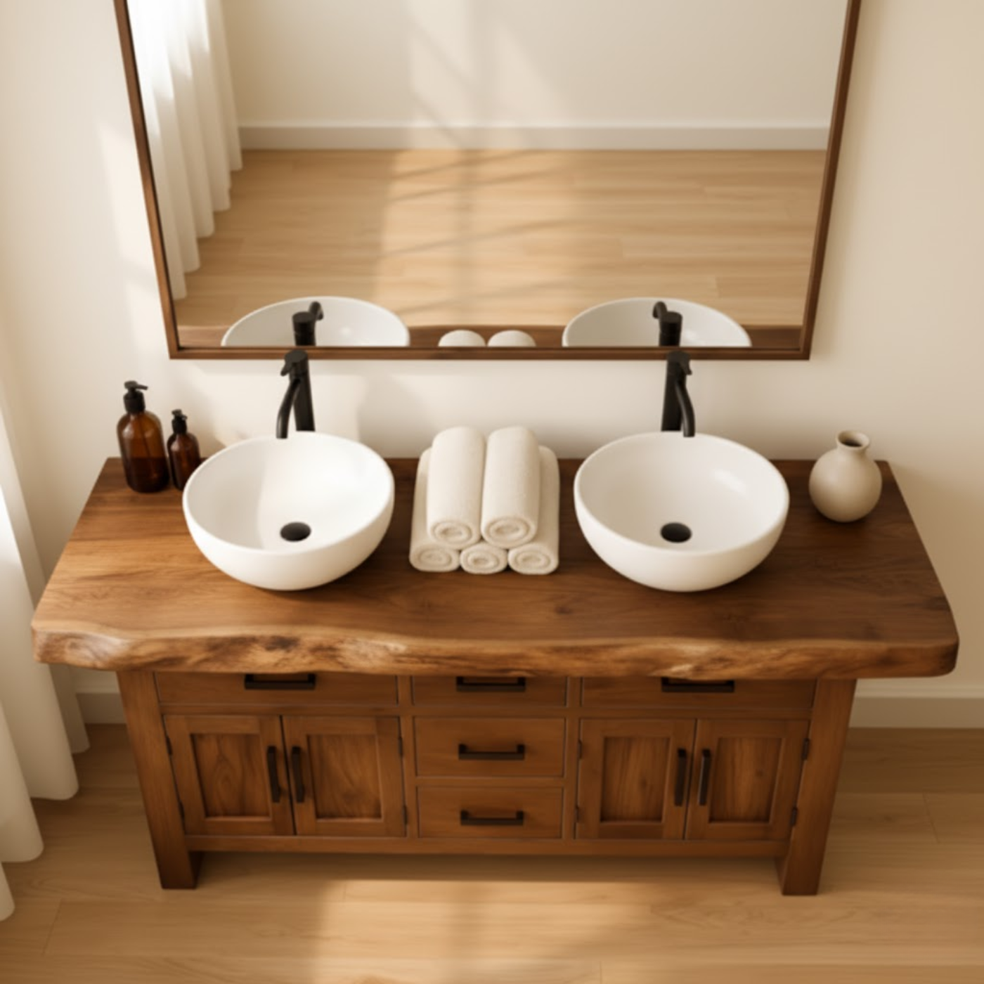 Handcrafted Solid Wood Bathroom Vanity - Live Edge Rustic Cabinet with Doors & Sink