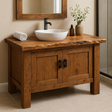 Handcrafted Solid Wood Bathroom Vanity – Live Edge Countertop with Double Door Storage