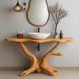 Handcrafted Solid Wood Bathroom Vanity – Organic Tree Root Design with Natural Live Edge