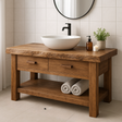 Handcrafted Solid Wood Bathroom Vanity with Live Edge Top and Open Shelf Storage