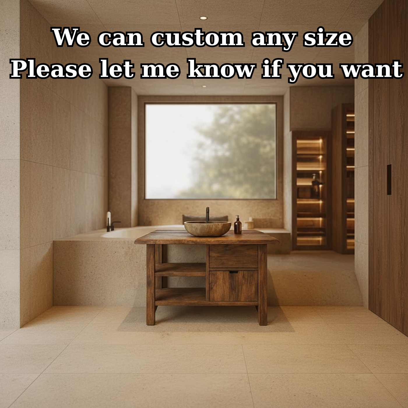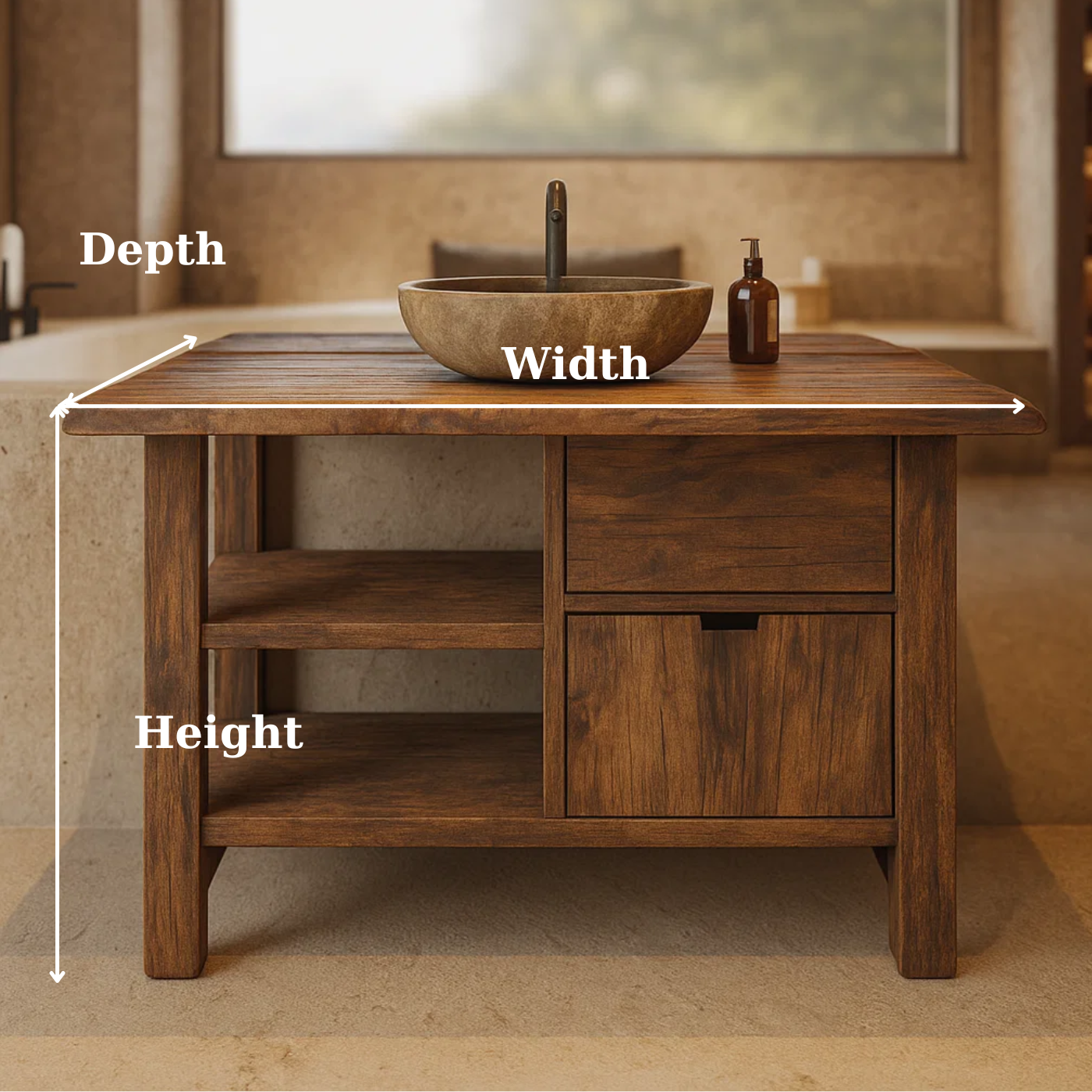 This handcrafted solid wood bathroom vanity features a smooth live-edge top, open side shelving, and soft-close drawer storage for a warm and modern spa-like feel. Built from premium hardwood, it delivers durability, functionality, and natural elegance to elevate any bathroom space.