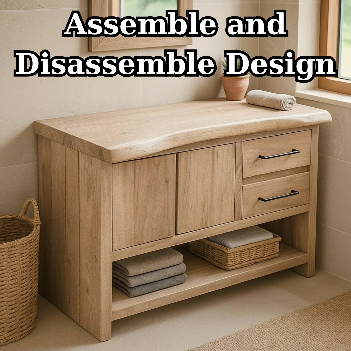 This handcrafted solid wood bathroom vanity features a natural live edge maple top that celebrates the organic beauty of wood. Built with smooth lines, two drawers with black metal handles, and an open lower shelf, it combines rustic warmth with modern simplicity. Perfect for adding natural charm and refined craftsmanship to any contemporary or farmhouse-inspired space.