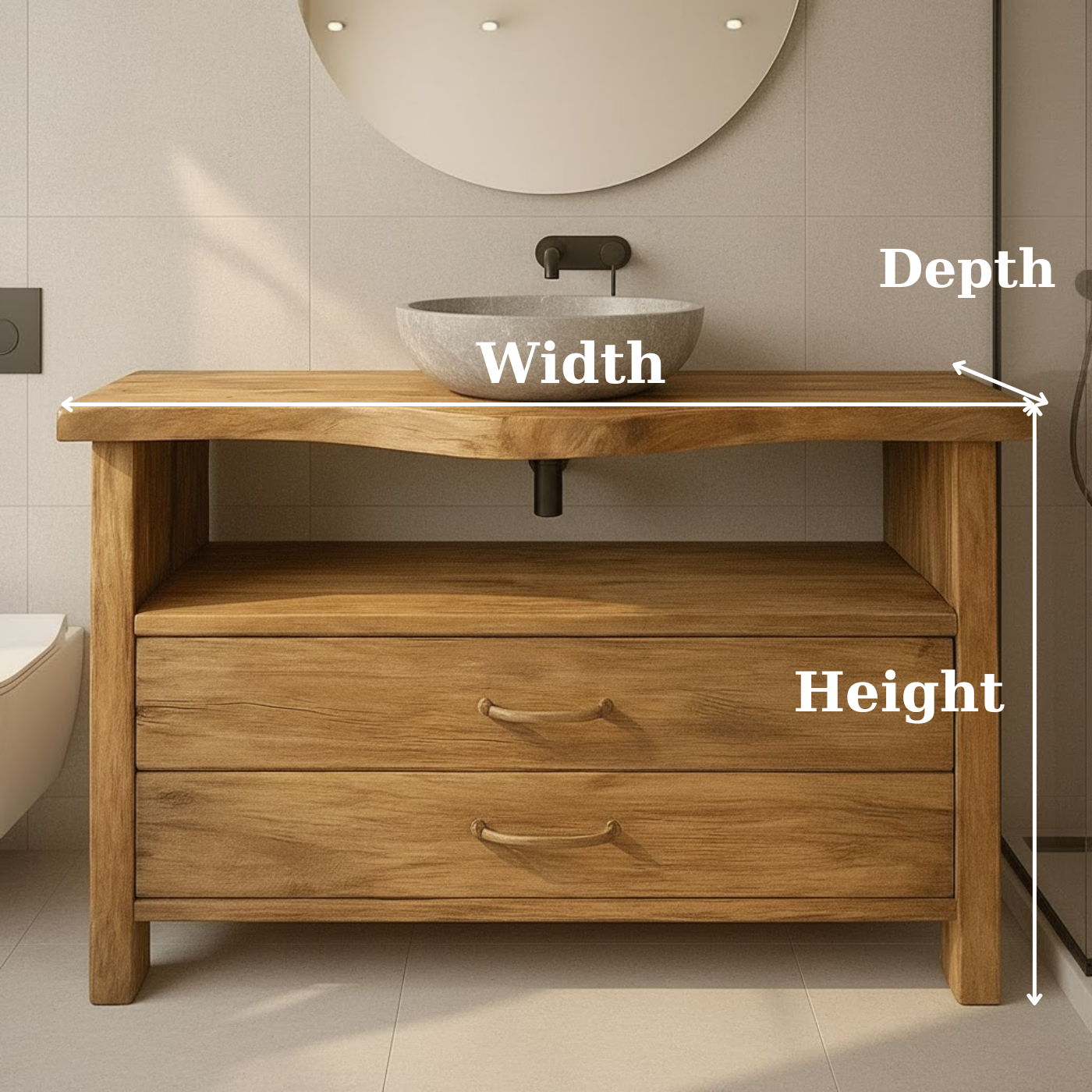 Handcrafted Solid Wood Bathroom Vanity with Live Edge Oak Top and Two Storage Drawers