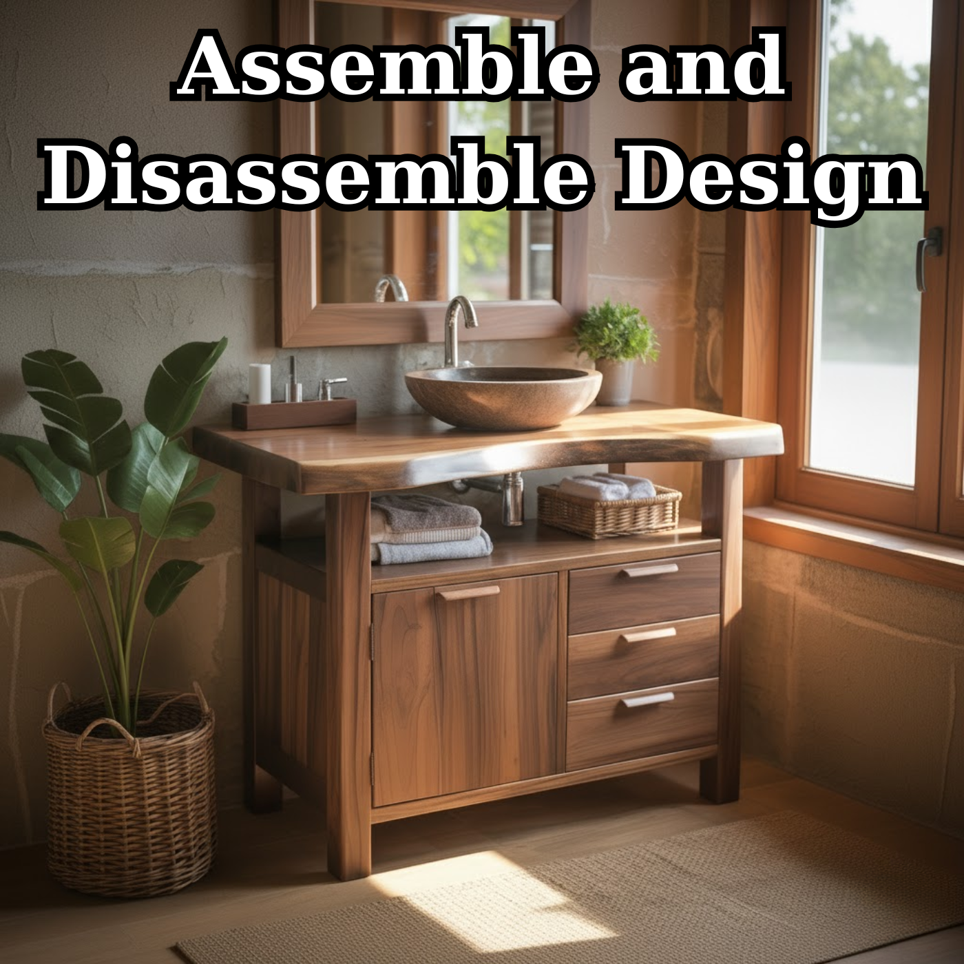 Handcrafted Solid Wood Bathroom Vanity with Live Edge Walnut Top and Storage Drawers