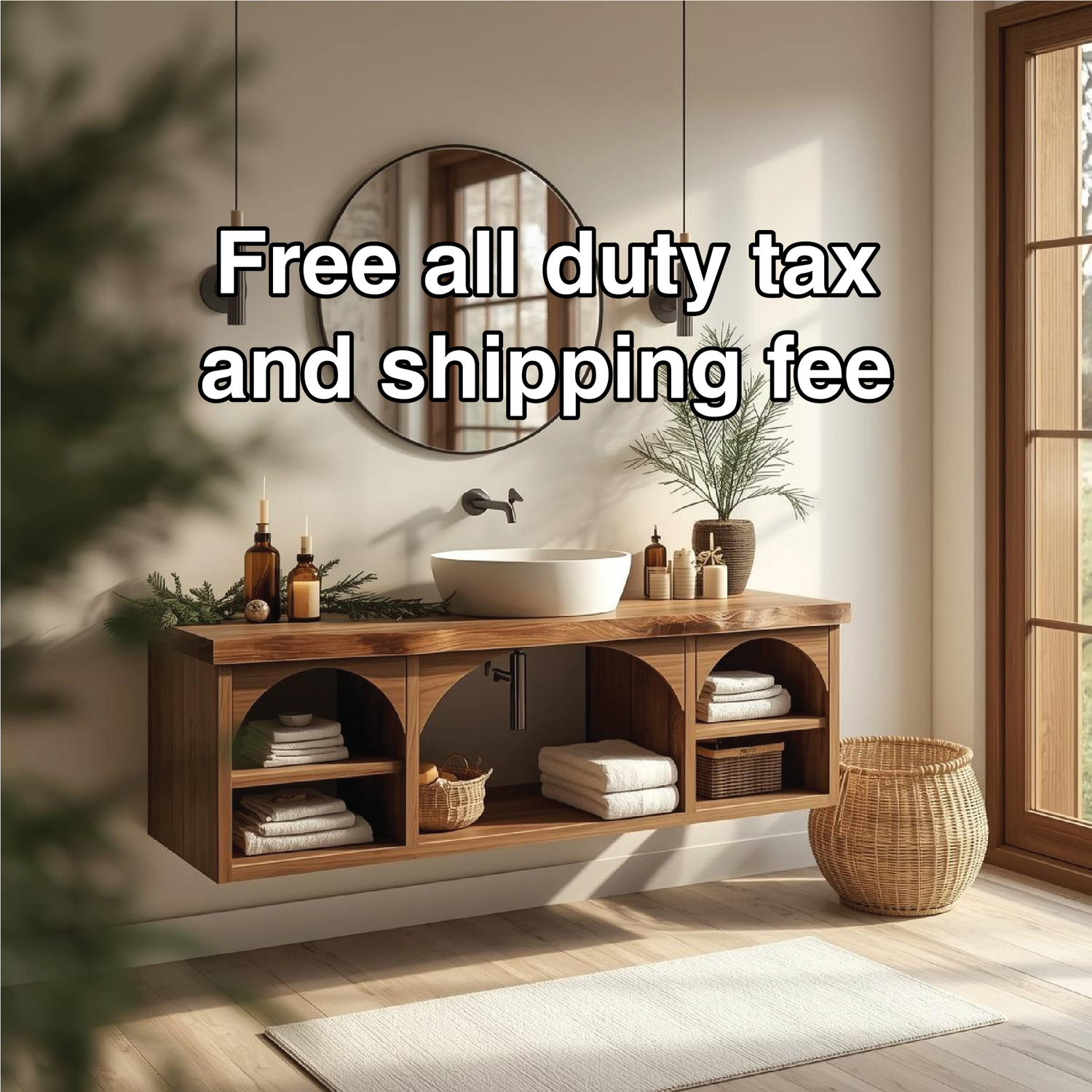This elegant floating vanity is handcrafted from solid wood, featuring beautifully arched open shelves. Its live edge top highlights the natural grain, adding warmth and sophistication to any bathroom. Designed for modern interiors, it combines artisan craftsmanship with timeless organic beauty.