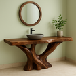 Handcrafted from solid wood, this sculptural bathroom vanity features a branch-inspired base and live-edge top. A true statement of organic artistry and modern craftsmanship for natural interiors.