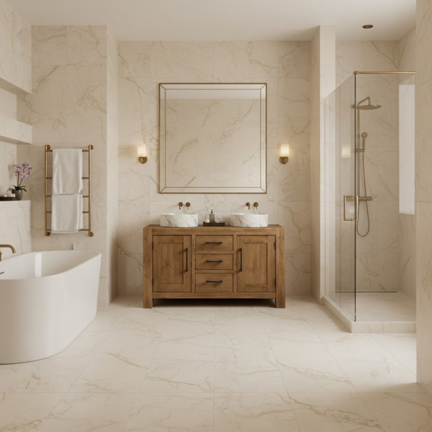 Handcrafted Solid Wood Double Bathroom Vanity - Cabinet & 3 Drawer Storage