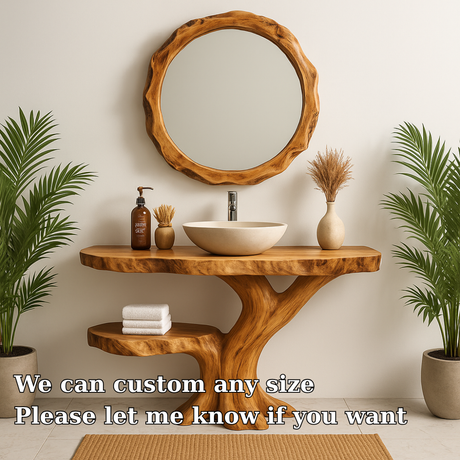 Regular price From $1,460.00Unit price /UnavailableHandcrafted Solid Wood Bathroom Vanity – Organic Tree-Inspired Design with Round Mirror