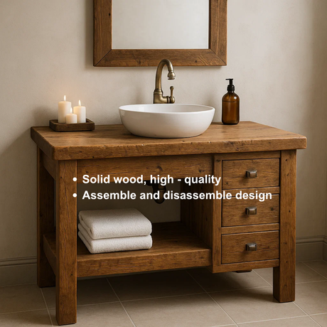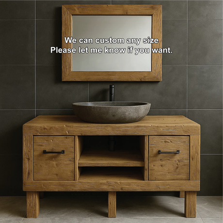 Regular price From $1,911.00Unit price /UnavailableHandcrafted Solid Wood Bathroom Vanity – Rustic Base with Side Drawers and Open Shelf