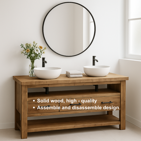 Regular price From $1,851.00Unit price /UnavailableHandcrafted Solid Wood Double Sink Vanity – Modern Rustic Base with 3 Drawers and Open Shelf