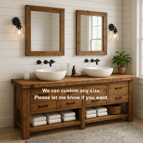 Regular price From $1,951.00Unit price /UnavailableHandcrafted Solid Wood Double Sink Vanity – Rustic Farmhouse Base with 8 Drawers and Open Shelf