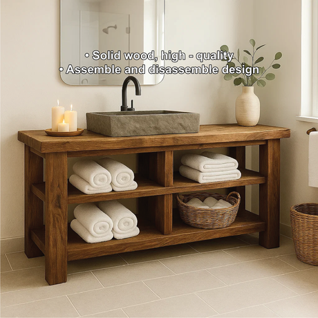 Regular price From $2,260.00Unit price /UnavailableRustic Solid Wood Bathroom Vanity with Slatted Shelf and Natural Finish for Handcrafted Interiors
