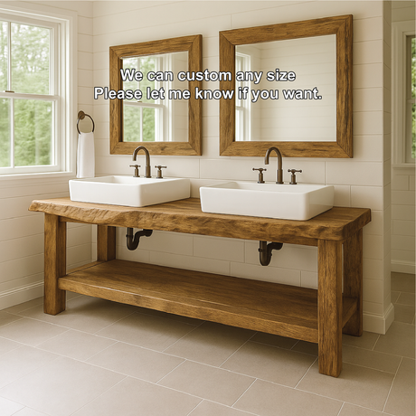 Handcrafted Double Sink Solid Wood Bathroom Vanity with Live Edge Design for Modern Rustic Homes