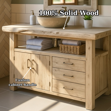 Regular price From $1,951.00Unit price /UnavailableHandcrafted Solid Wood Bathroom Vanity with Live Edge Oak Top and Open Storage