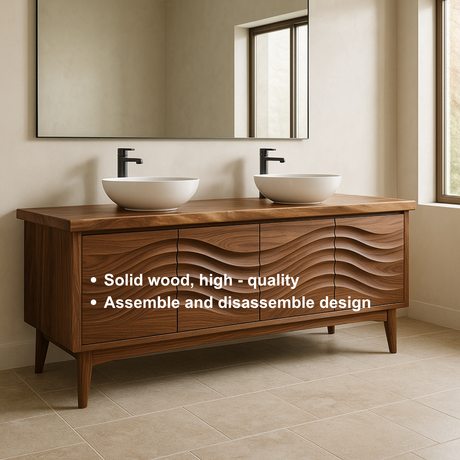 Regular price From $2,110.00Unit price /UnavailableHandcrafted Solid Wood Double Sink Vanity – Modern Organic Wavefront Design