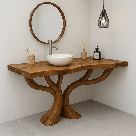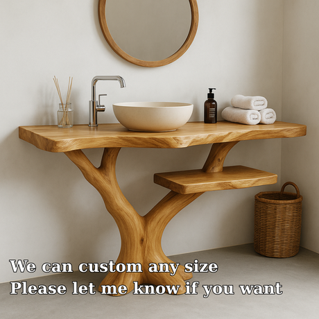 Regular price From $2,060.00Unit price /UnavailableHandcrafted Solid Wood Bathroom Vanity – Sculptural Tree Root Base with Natural Live Edge