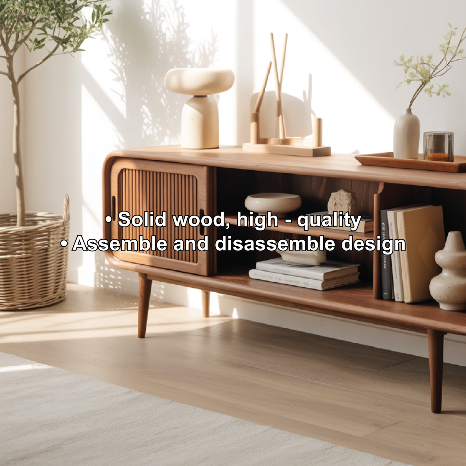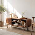 Solid Wood Console Table with Sliding Door – Handcrafted Mid-Century Storage & Display Shelf