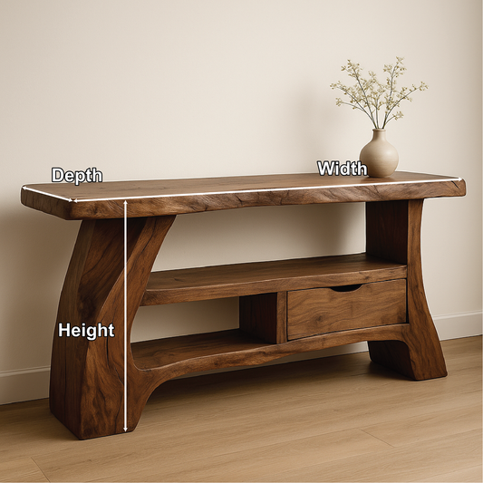Handcrafted Solid Wood Console Table with Live Edge Top and Storage Drawers for Modern Interiors
