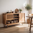 Solid Wood Console Table with Sliding Doors – Modern Handcrafted Storage for Dining Space