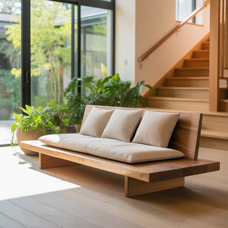 Handcrafted Solid Wood Bench – Live Edge Walnut Entryway Bench with Organic Wave Design