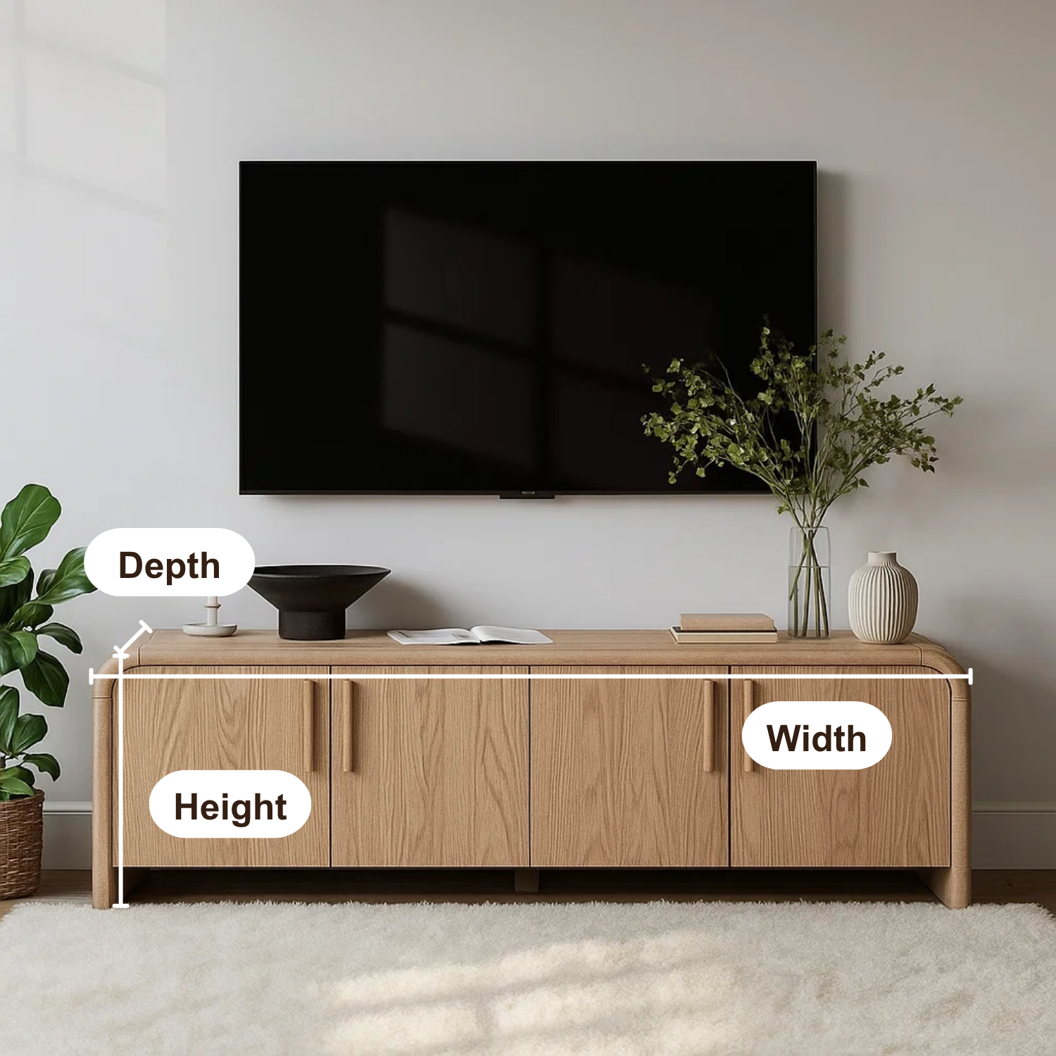 This handcrafted TV stand is made from solid oak wood, featuring soft rounded edges and a smooth natural finish. Four cabinet doors offer ample hidden storage, keeping your space clean and elegant. Perfect for modern minimalist interiors, it blends refined craftsmanship with timeless simplicity.