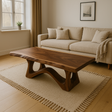 This handcrafted solid wood coffee table combines organic artistry with minimalist form. Its sculpted base and smooth live-edge top highlight the natural grain and warmth of the wood. A perfect centerpiece for contemporary living spaces, it brings timeless craftsmanship and modern elegance together seamlessly.