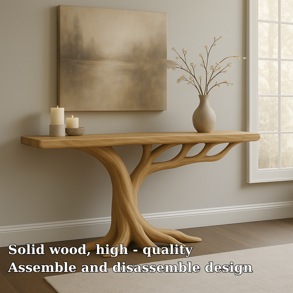 Handcrafted Solid Wood Console Table – Sculptural Branch Base for Modern Interiors