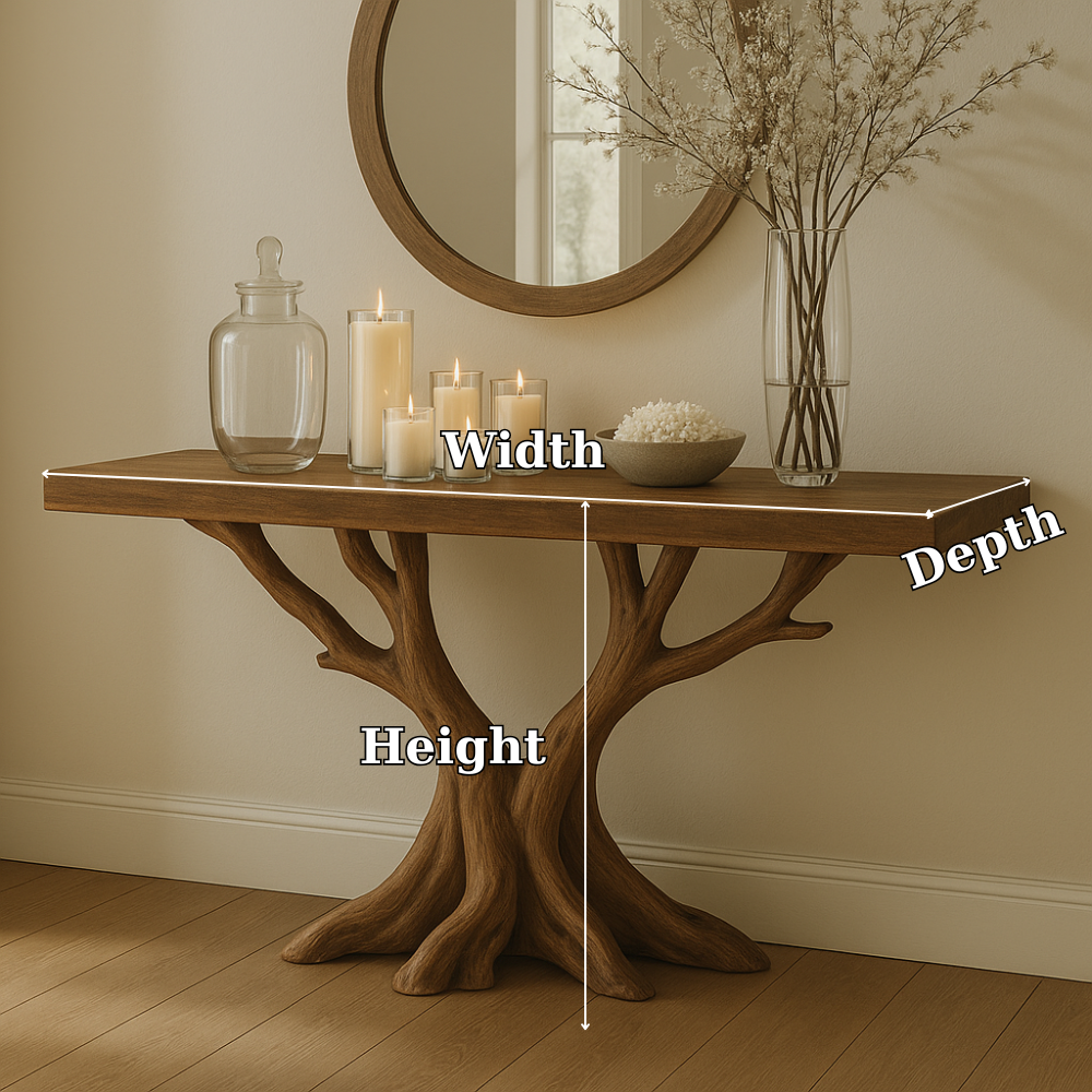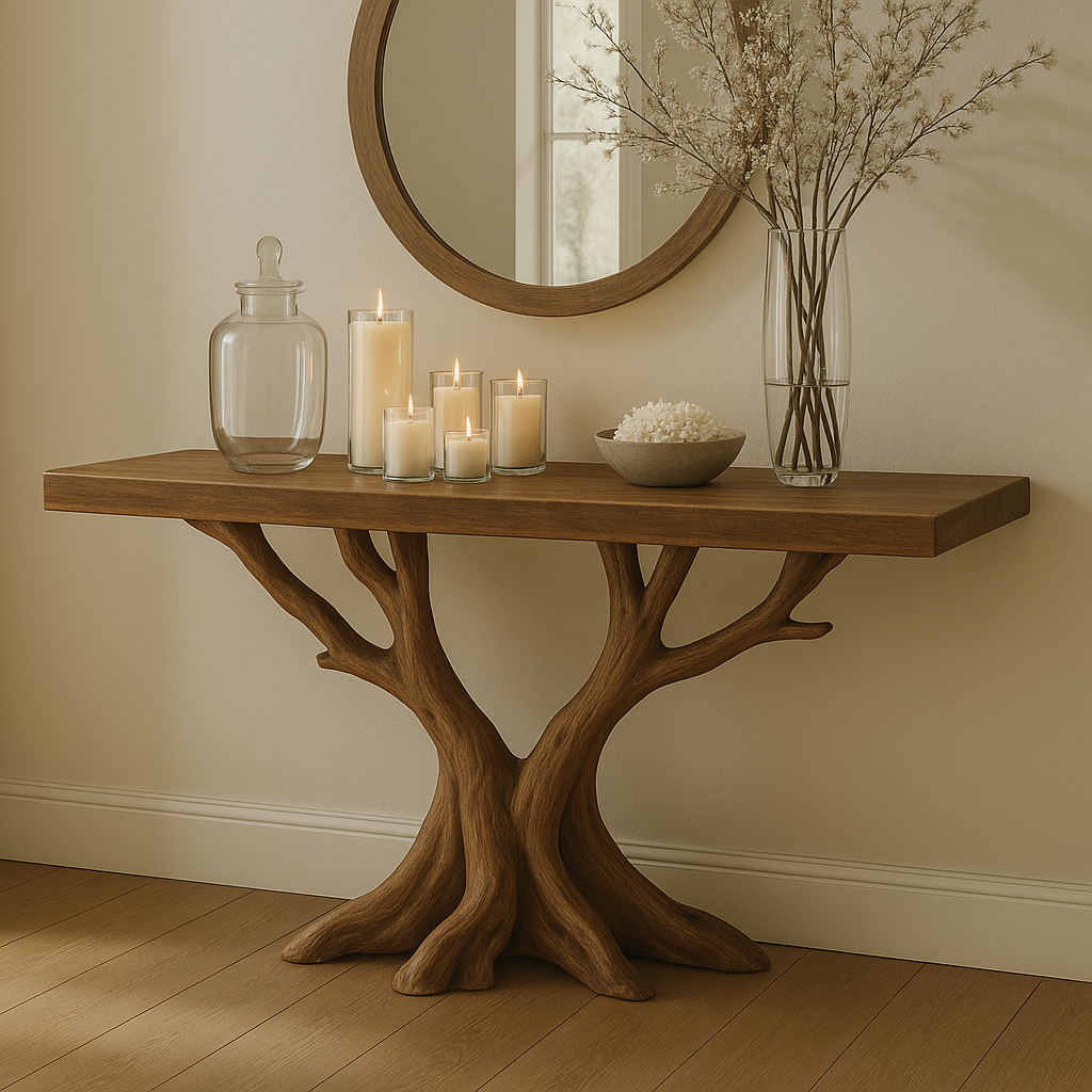 Handcrafted Solid Wood Console Table – Sculptural Tree Branch Base for Modern Natural Interiors