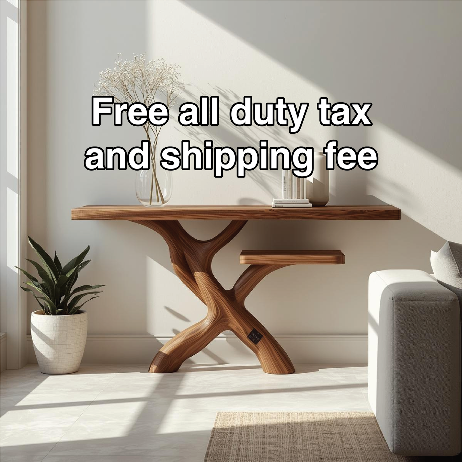 Handcrafted Solid Wood Console Table with Modern Branch-Inspired Base and Minimalist Design
