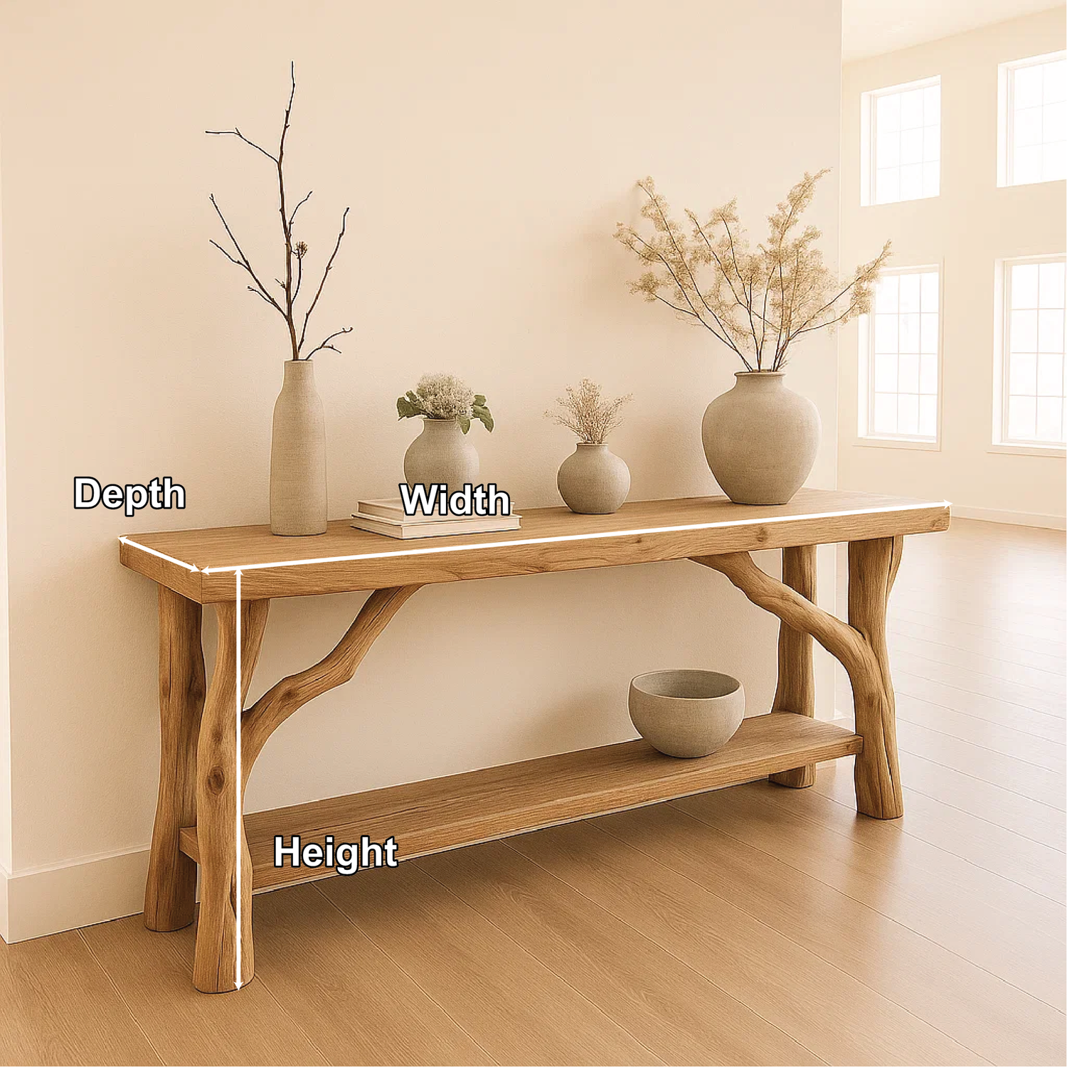 Handcrafted Solid Wood Console Table with Natural Branch Legs for Organic Minimalist Interiors