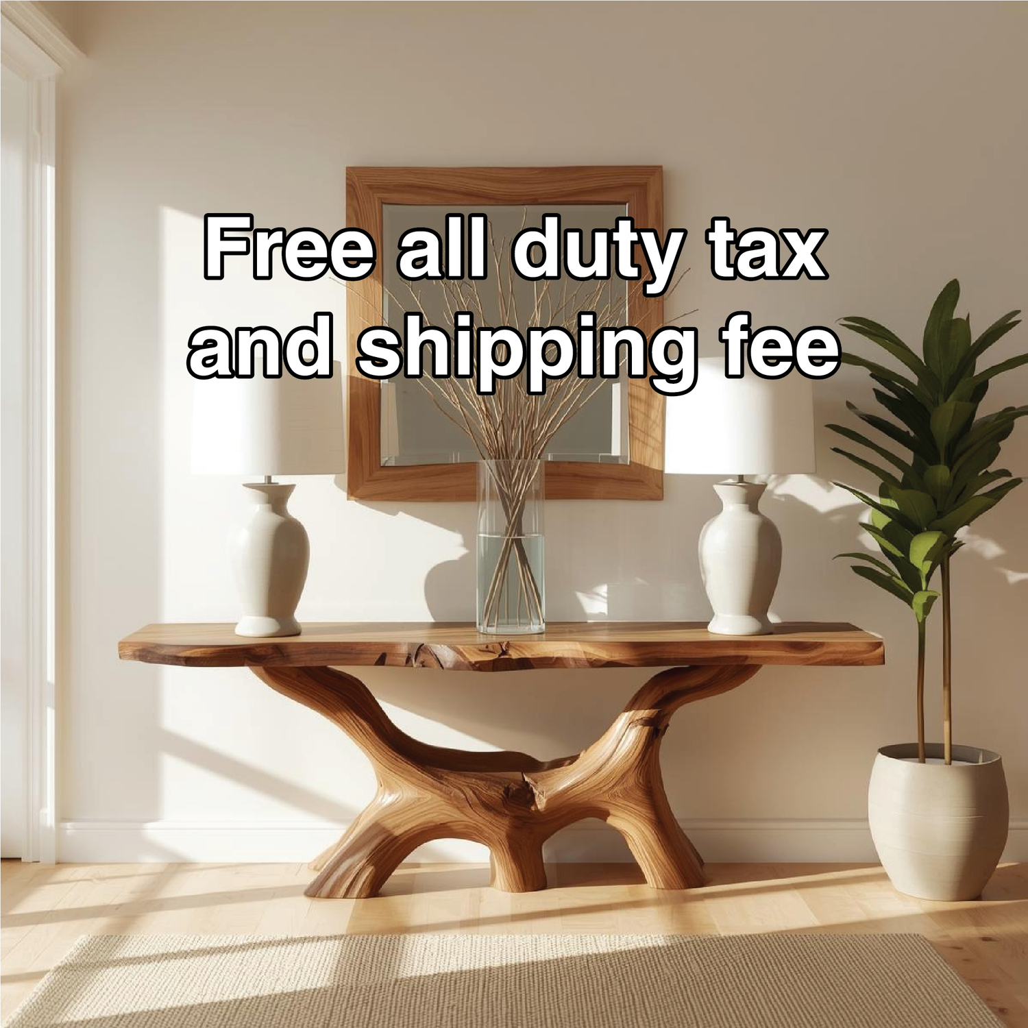 Handcrafted Solid Wood Console Table with Natural Live Edge and Organic Sculptural Base