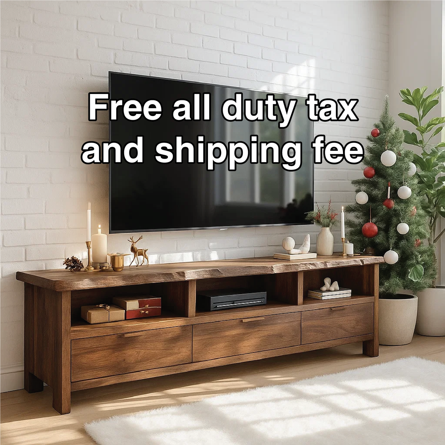 Handcrafted Solid Wood TV Stand with Live Edge Design and Storage Drawers for Modern Interiors