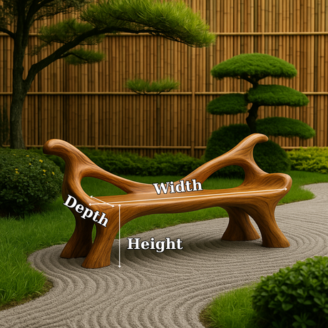 Handcrafted Solid Wood Bench with Backrest – Sculptural Organic Design for Garden & Patio