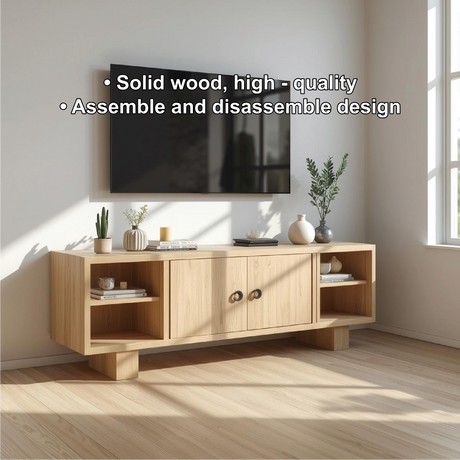 Regular price From $1,775.00Unit price /UnavailableHandcrafted Solid Wood TV Stand with Double Doors and Open Shelves in Natural Oak Finish