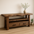 Handcrafted Solid Wood Live Edge Console Table – Rustic Walnut Design with Drawers and Open Shelf
