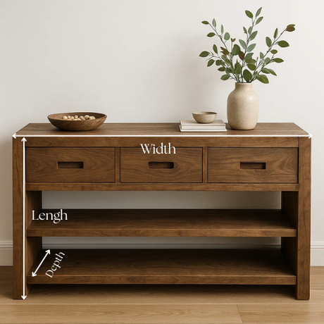 Regular price From $1,660.00Unit price /UnavailableHandcrafted Solid Wood Console Table – Walnut Finish with Drawers and Open Shelf