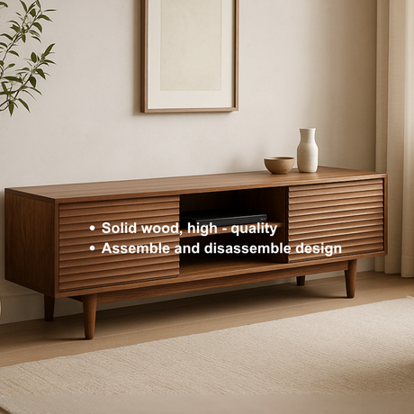 Handcrafted Solid Wood TV Stand – Modern Ribbed Door Media Console for Living Room