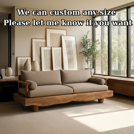 Regular price From $2,540.00Unit price /UnavailableHandcrafted Solid Wood Sofa – Rustic Live Edge Wood Couch with Minimalist Linen Cushions