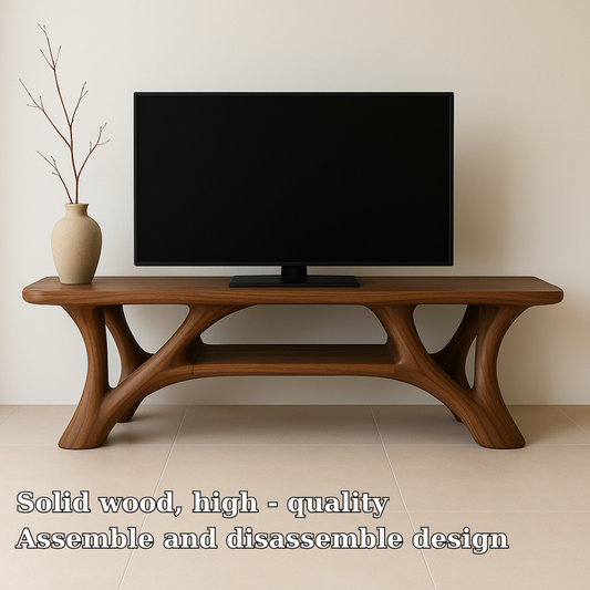 Handcrafted Solid Wood TV Stand – Modern Organic Design with Smooth Sculptural Curves