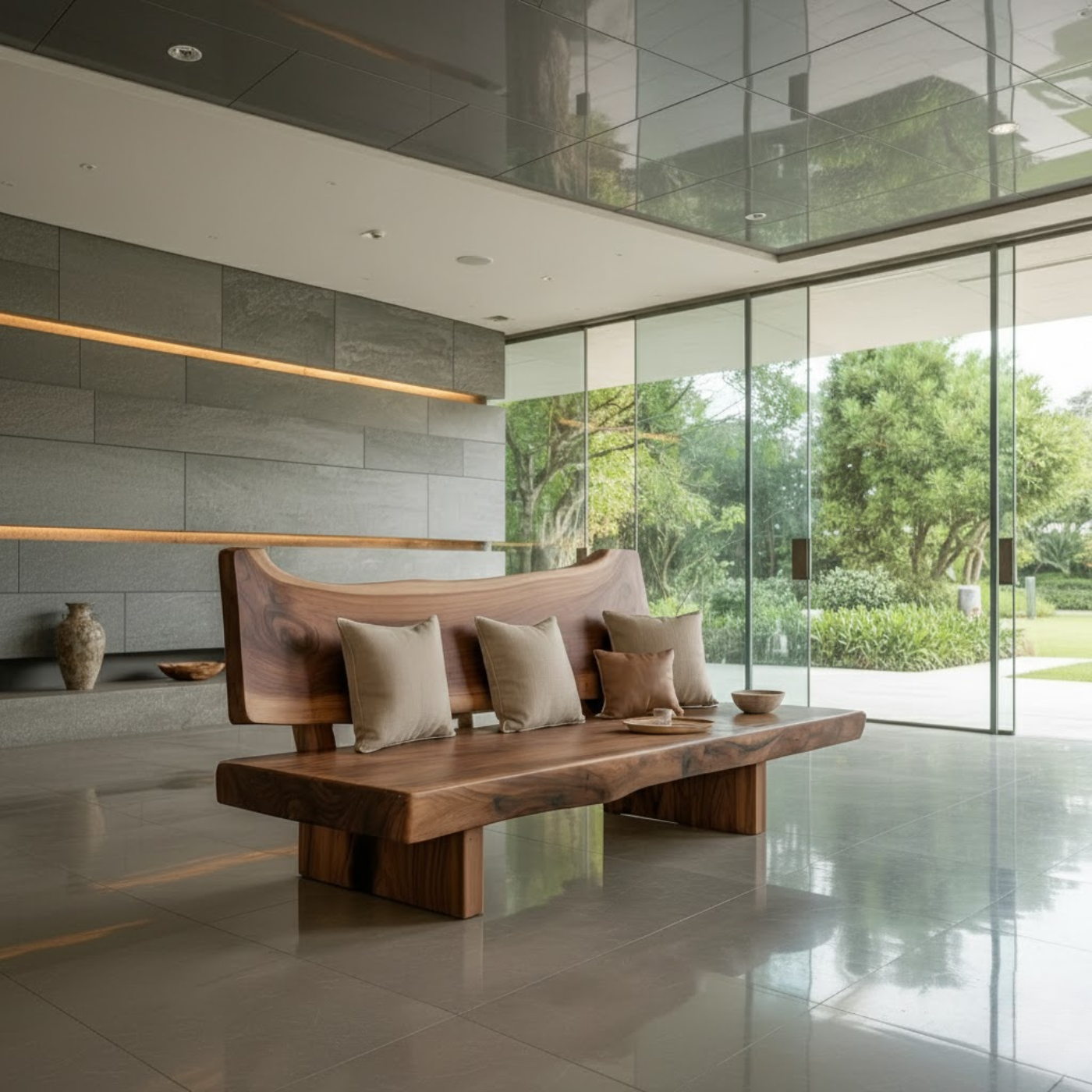 This handcrafted solid walnut sofa features a bold live edge seat paired with a sculpted backrest that highlights the natural wood grain. Its warm tones and minimalist form bring organic elegance and artisanal charm to any modern living space.