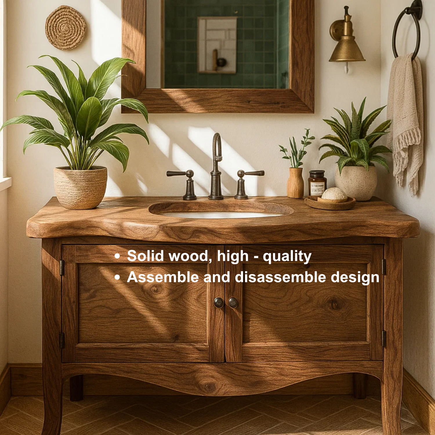Bring timeless charm to your bathroom with this handcrafted solid wood vanity featuring a graceful curved silhouette and natural live edge top. The double door storage design offers both functionality and elegance, making it perfect for rustic, farmhouse, or traditional interiors.