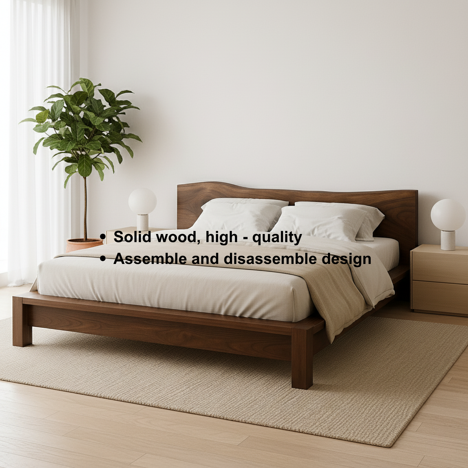 This handcrafted solid wood bed frame features a sculpted organic wave headboard that brings warmth and natural elegance to any modern bedroom. The minimalist silhouette, clean lines, and sturdy construction create a calm, refined sleeping space. Designed for durability and timeless beauty, it pairs perfectly with contemporary, Japandi, and Scandinavian interiors.