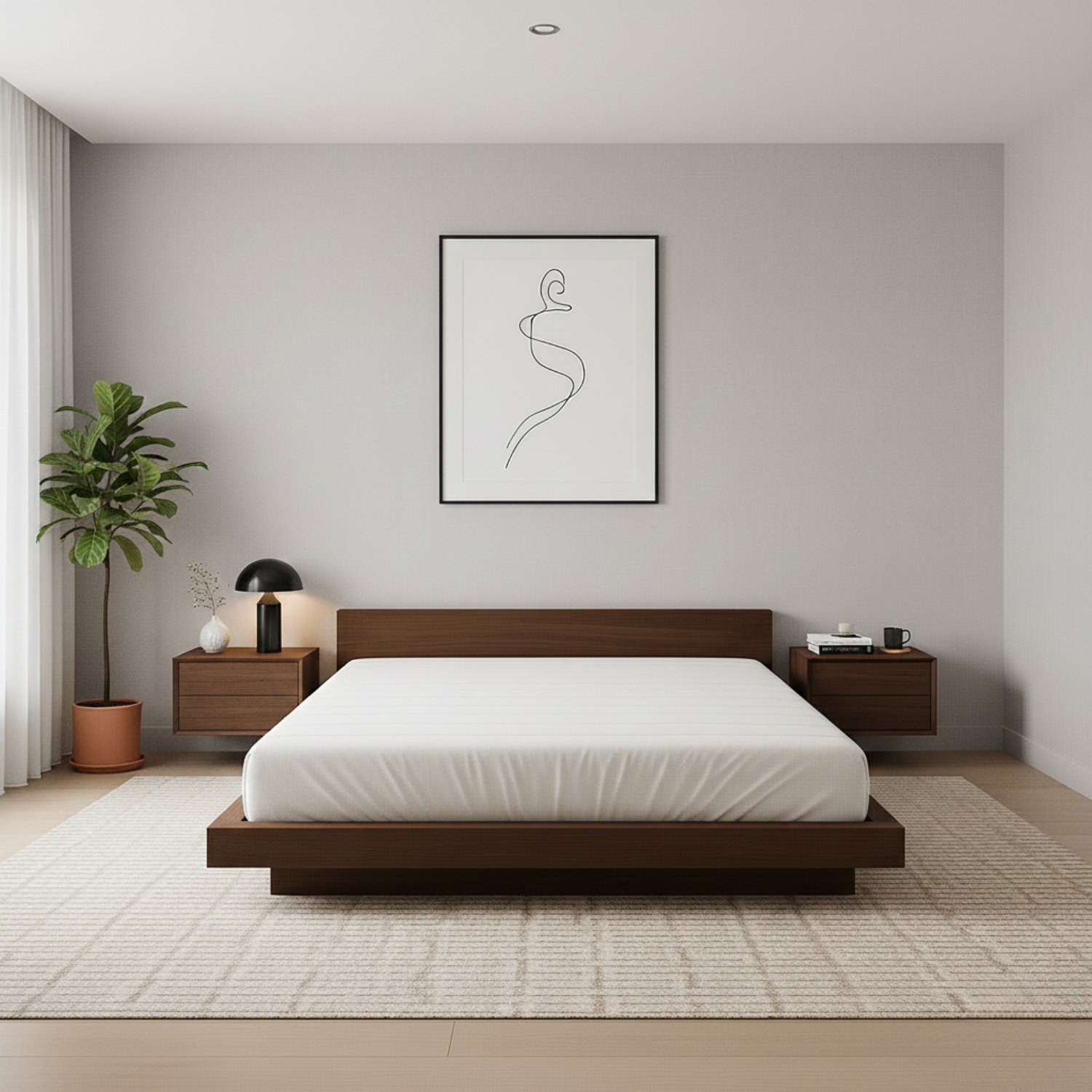Elevate your bedroom with this handcrafted solid wood platform bed, designed with clean modern lines and a smooth minimalist headboard. Built for lasting durability and everyday comfort, it brings natural warmth and timeless elegance to any contemporary space. Perfect for homeowners seeking premium craftsmanship and a refined, clutter-free aesthetic.