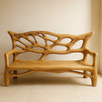 Handcrafted Solid Wood Bench – Sculptural Oak Art Bench with Organic Carved Backrest Design