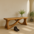 This handcrafted solid wood bench combines natural artistry with modern organic design. Expertly carved from a single block of wood, it features flowing curves and a sculptural cross-leg base that exudes harmony and balance. Perfect for entryways, living rooms, or art-inspired interiors seeking timeless craftsmanship.