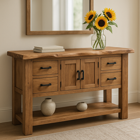 Handcrafted Solid Wood Console Table – Rustic Entryway Furniture with Drawers and Open Shelf