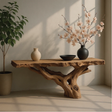 Handcrafted Solid Wood Console Table with Natural Root Base and Organic Live Edge Design