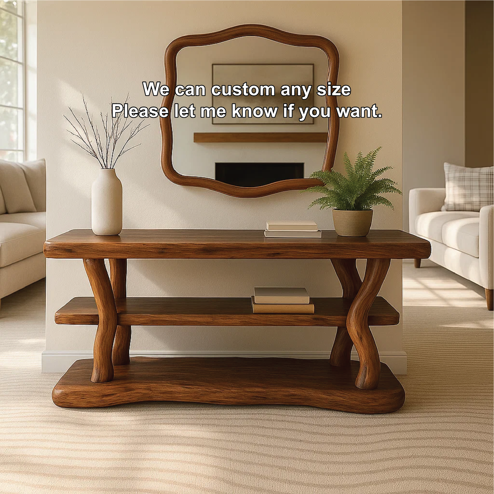 Expertly handcrafted from premium solid wood, this console table highlights organic curves and natural grain patterns. The smooth live-edge design and sculptural legs create a warm, inviting centerpiece for any living space. Perfect for hallways, entryways, or living rooms, adding timeless elegance and artisanal character.